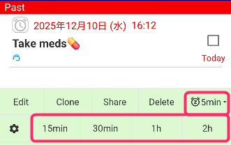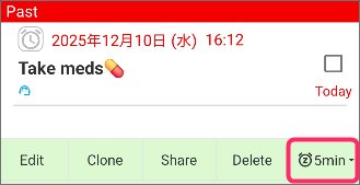 For PRO version, you can re-notify after certain minutes with tapping the button on a notification.
