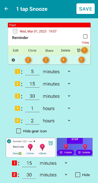 Then, when the reminder rings the first time, the minute-selection buttons will be shown immediately.