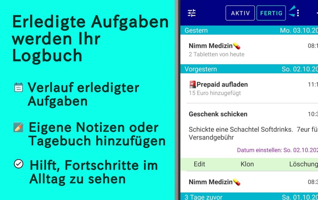 Ihre täglichen Handlungen werden als klarer und nützlicher Verlauf gespeichert.