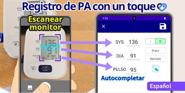 ¡No es necesaria ninguna entrada manual para registrar la presión arterial! ¡Simplemente escanee su monitor de presión arterial para registrar automáticamente!
