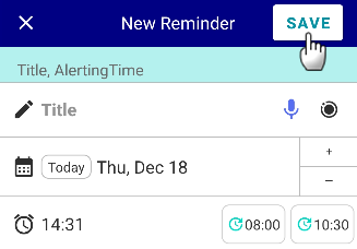 By registering your settings as a Quick Set, detailed options such as alert type and snooze settings are saved. Next time, you can set the same reminder instantly just by selecting it from the suggestions.