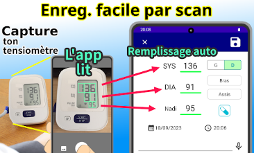 Avec Noter sa Tension en Un Clic pour Android, vous pouvez scanner votre tensiomètre, lire les valeurs avec l’OCR et enregistrer automatiquement vos mesures. Ce fonctionnement simple vous aide à garder un suivi régulier sans effort.