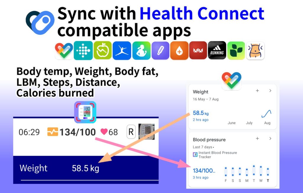 With the Instart Blood Pressure Tracker app, you can view your recorded blood pressure data in other Health Connect–compatible health apps such as Google Fit and Fitbit.