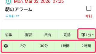 Snooze一発再アラート(スヌーズ)ボタンが表示されない事がある理由 これら及び通知内の、再アラート(スヌーズ)ボタンが表示されない事がありますが、 再アラートボタンは、条件が揃わないと表示されません。 一発再アラートボタンが表示されないパターン 過去ではない予定(まだ1度も鳴ってない未... 2026.03.02Snooze