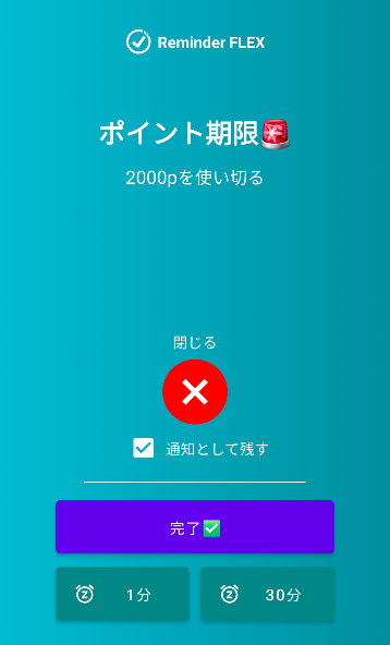 リマインダーFLEXアプリのVer.28から、全画面通知機能が実装されました。