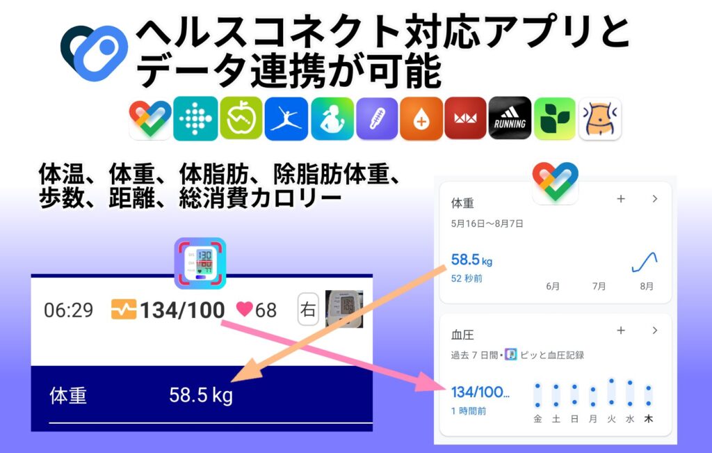 ピッと血圧記録は、ヘルスコネクトに対応しております。