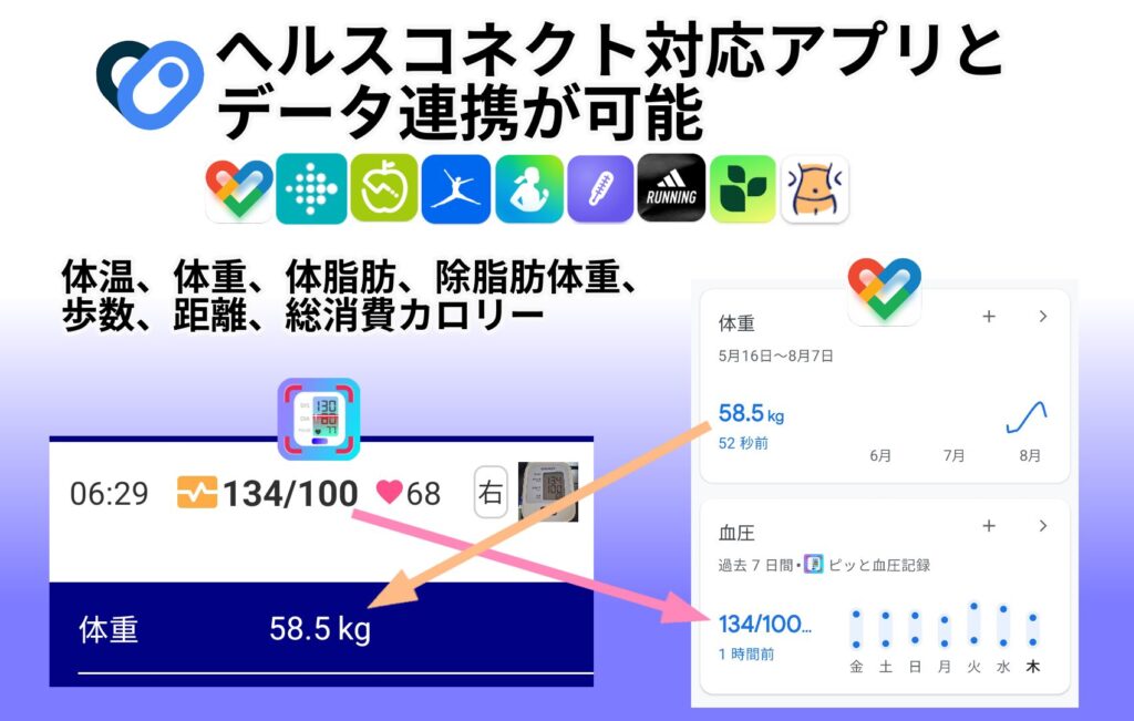 ピッと血圧記録は、ヘルスコネクトに対応しております。