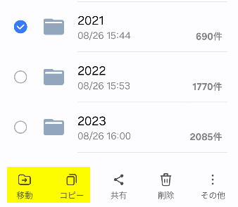 目的のアルバムを長押しし、移動かコピーを選びます。