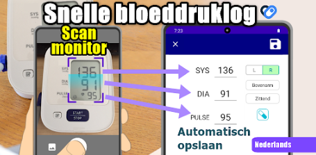 Het goede nieuws is dat je de bloeddrukmeter die je al hebt kunt blijven gebruiken. Met de Android-app Snelle bloeddrukregistratie, kun je simpelweg de camera van je telefoon op het scherm van je meter richten. De app scant het display, leest de getallen met OCR en logt automatisch je bloeddruk en pols. Typen is niet nodig.
