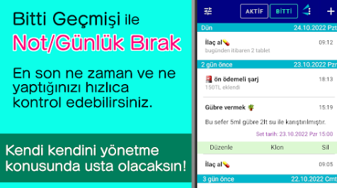 - Her geçmiş kaydına not ekleyebilirsiniz, böylece ayrıntılı kayıtlar saklanır. Günlük olarak da kullanılabilir