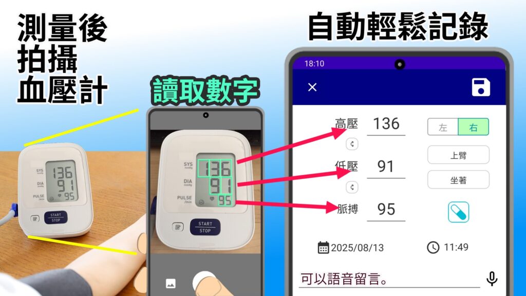 透過掃描您的血壓計自動記錄讀數
